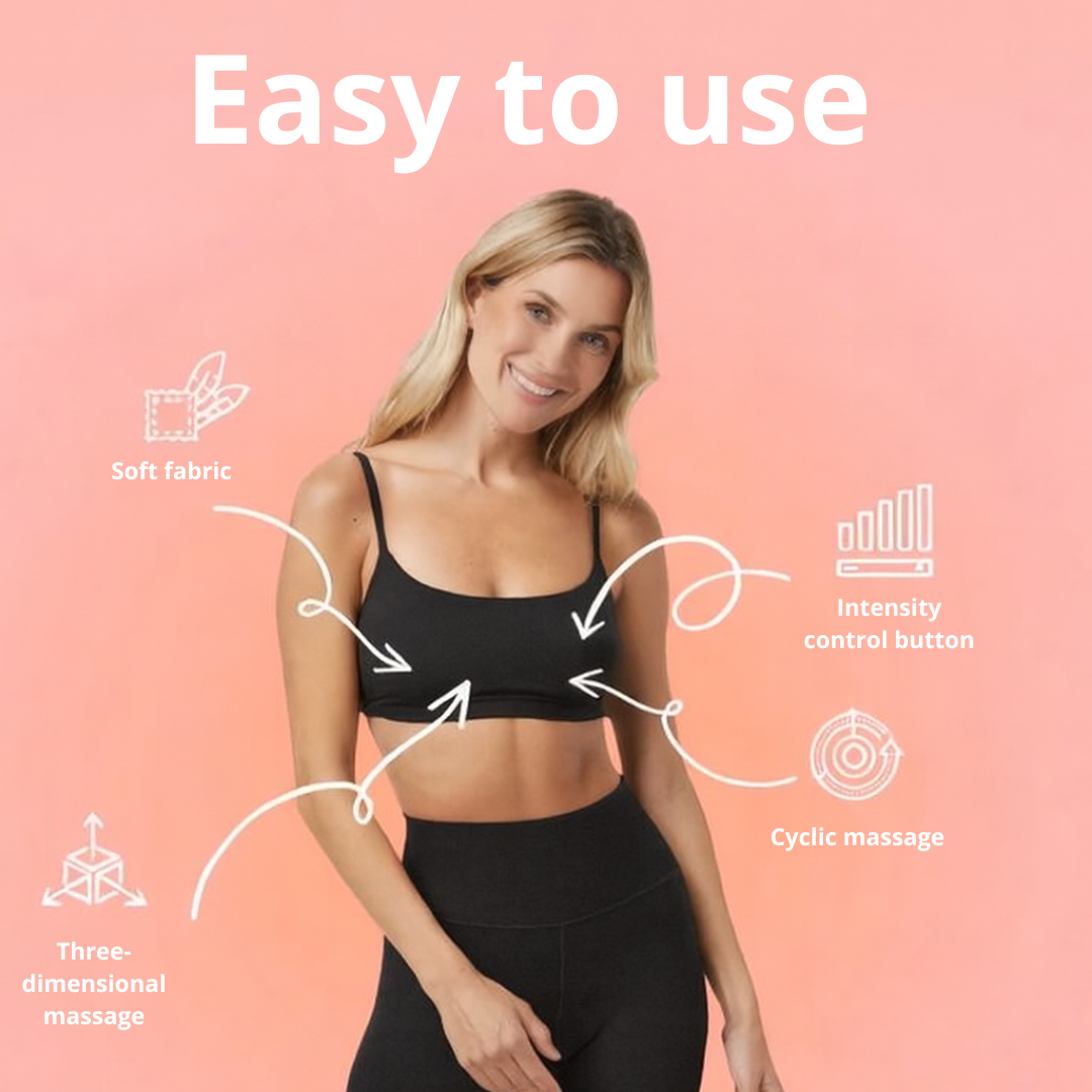 Our innovative bra is equipped with micro-motors that deliver a deep massage, helping to naturally stimulate breast tissue and improve blood circulation.